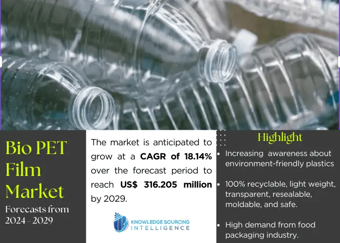 The market for bio-PET film has expanded as a result of growing awareness of the production and application of bio-based PET. The European Bioplastics (Association of Bioplastics) projects that by 2025, the production of bioplastics will reach 2.8 million metric tons.