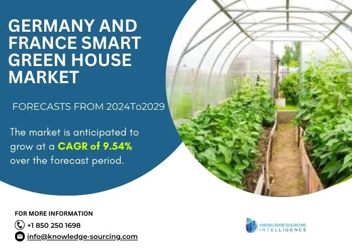 The German and France smart greenhouse market is anticipated to grow at a compound annual growth rate (CAGR) of 9.54% during the forecast period (2024-2029).