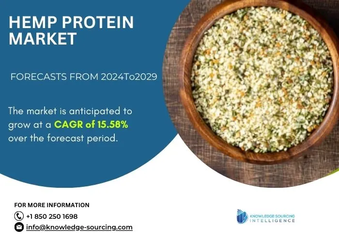 The Hemp Protein Market is expected to grow at a CAGR of 15.58% from US$604.07 billion in 2022 to US$1,664.86 billion in 2029.