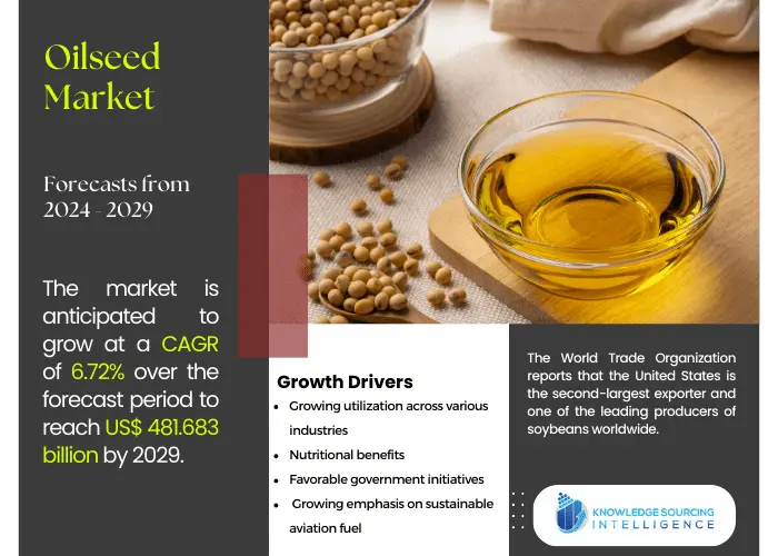 The oilseed market is projected to grow at a CAGR of 6.72% to reach US$481.683 billion in 2029 from US$305.526 billion in 2022.