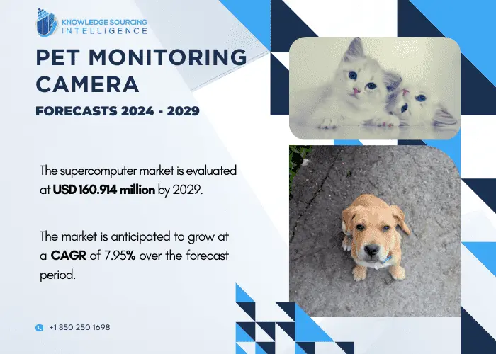 The growing awareness of pet supplies and product tracking drives rapid growth in the pet monitoring camera market. Due to their capacity to give pet owners remote control over their animals, trackers, and cameras, among other surveillance accessories, are becoming increasingly popular. The market is growing as a result of these improved features. The demand for other exotic or specialty pets, such as ferrets, hamsters, rabbits, turtles, poultry, snakes, and livestock, is growing, and this trend is driving up spending on pet supplies and monitoring equipment. Furthermore, as more and more millennials adopt dogs and cats from shelters and other rescued or abandoned animals, the market for pet cameras is expanding.