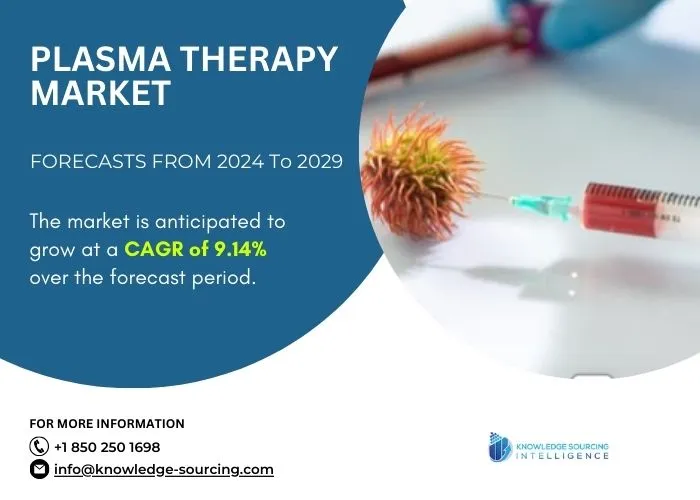 The use of plasma-derived goods or plasma-rich components for medicinal reasons is included in the plasma treatment market. Blood's liquid component, plasma, includes proteins and antibodies that are essential for several medical uses. Plasma exchange, intravenous immunoglobulin therapy, and plasma infusion are among the treatments for immunological deficiencies, autoimmune diseases, and specific neurological disorders that fall under the category of plasma therapy. The rising incidence of chronic illnesses, improvements in plasma processing methods, and growing regenerative medicine applications are the main factors propelling the market`s expansion.