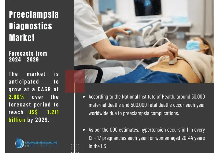 The global preeclampsia diagnostics market is expected to grow at a CAGR of 2.60% from US$1.012 billion in 2022 to US$1.211 billion in 2029.