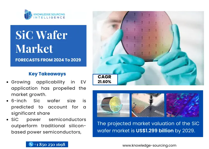The SiC wafer market is projected to grow at a CAGR of 21.60% to reach US$1.299 billion in 2029 from US$0.331 billion in 2022.