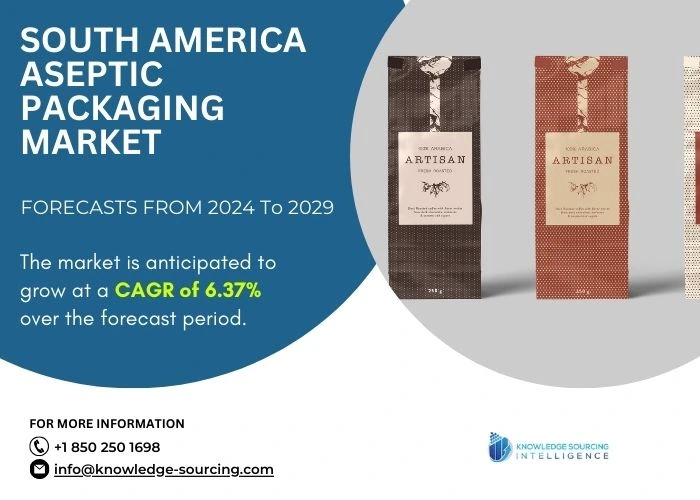 The South American aseptic packaging market is expected to grow at a CAGR of 6.37%, reaching a market size of US$6.254 billion in 2029 from US$4.593 billion in 2024.