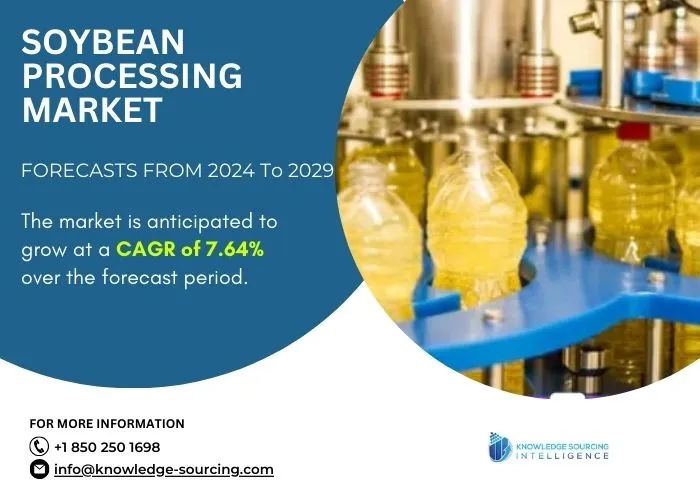 The growing consumer demand for soy-based goods and the emphasis on health and wellness are driving the global market for soybean processing. The growth of the livestock feed sector and the use of soybean oil in the manufacturing of biofuel facilitate the market's rise. Government regulations, technological developments, and the dynamics of international trade all play crucial roles. A greater focus on environmental sustainability and weather patterns that impact agricultural yields add further intricacy to the market's evolution.