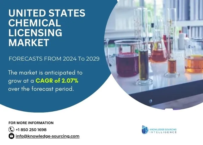 The United States chemical licensing market will reach US$3,103.244 million in 2029 at a CAGR of 2.07% from US$2,801.344 million in 2024.
